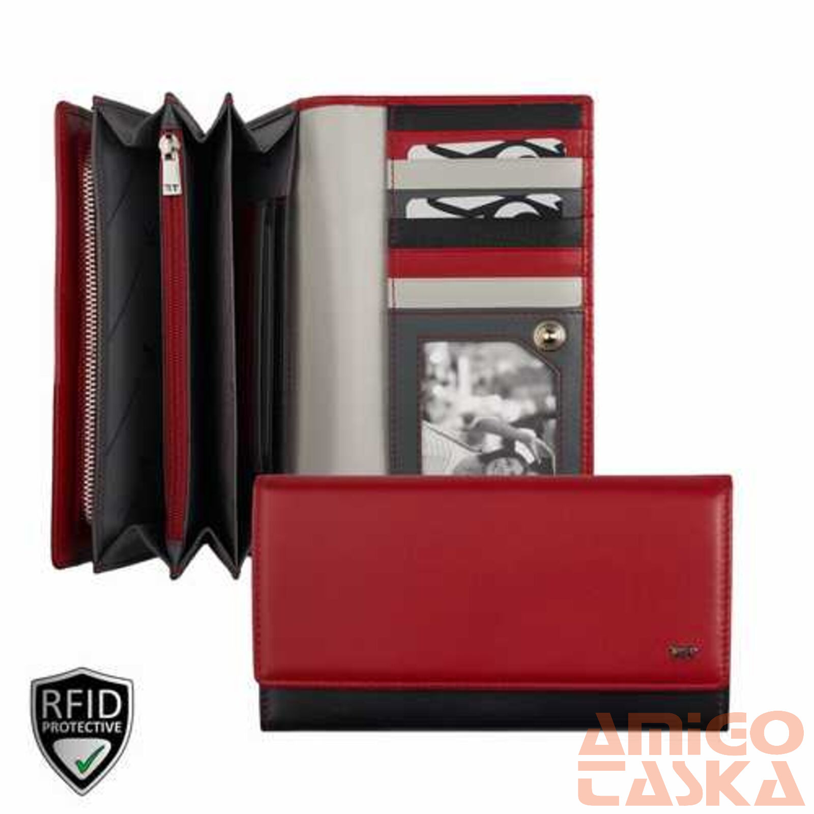 022820 080 Riccardo Ferducci női bőr pénztárca piros-fekete