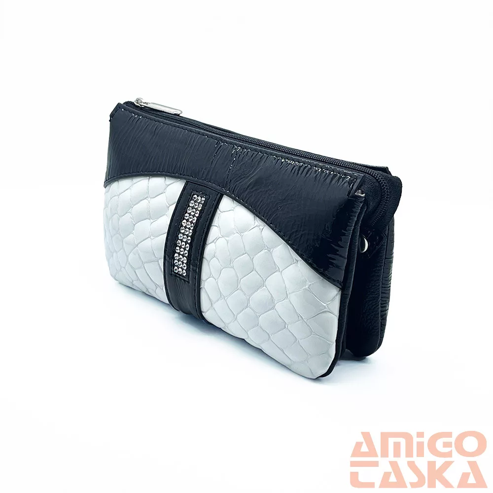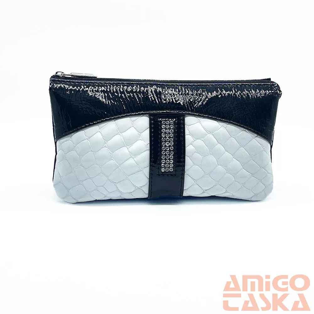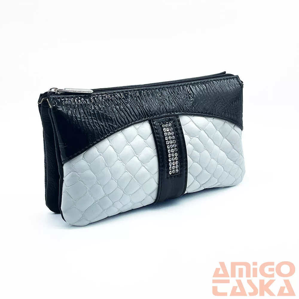 - Nem szokványos „neszeszer” fazonú, valódi bőrből készült, különleges swarovski kövekkel díszített női pénztárca.