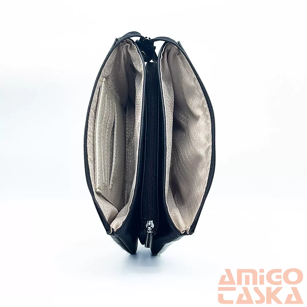 - A pénztárca cipzárral záródik, a cipzár alatt három rekesz található.