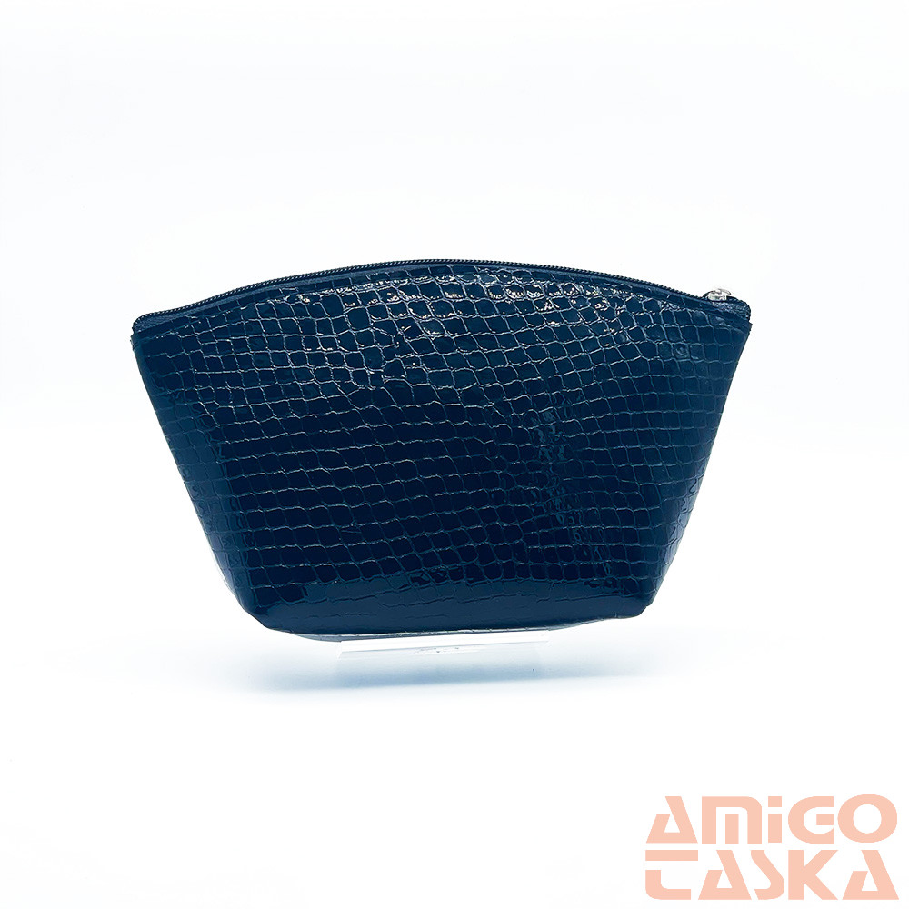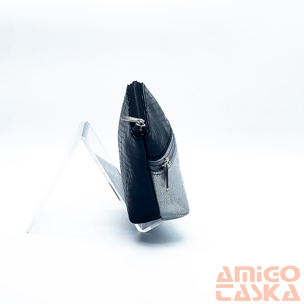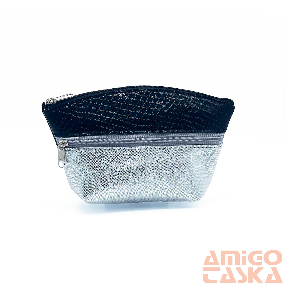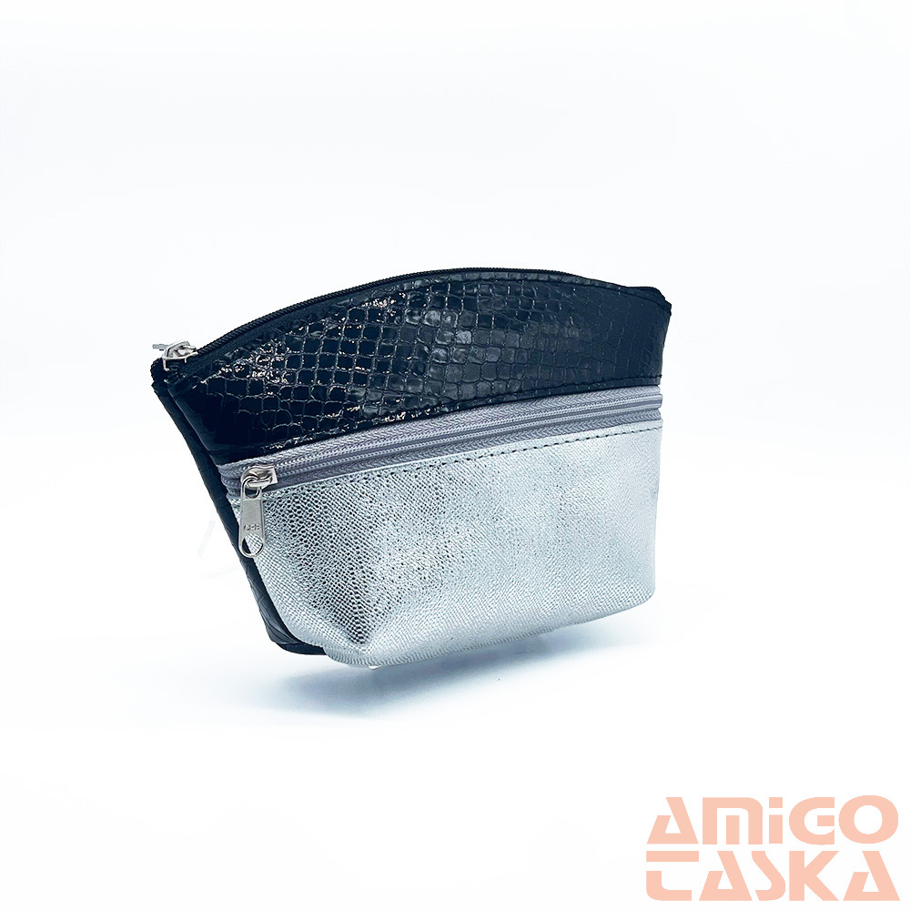 Amnisu fekete lakk kígyómintás / ezüst kettő cipzáras női bőr neszeszer i8023