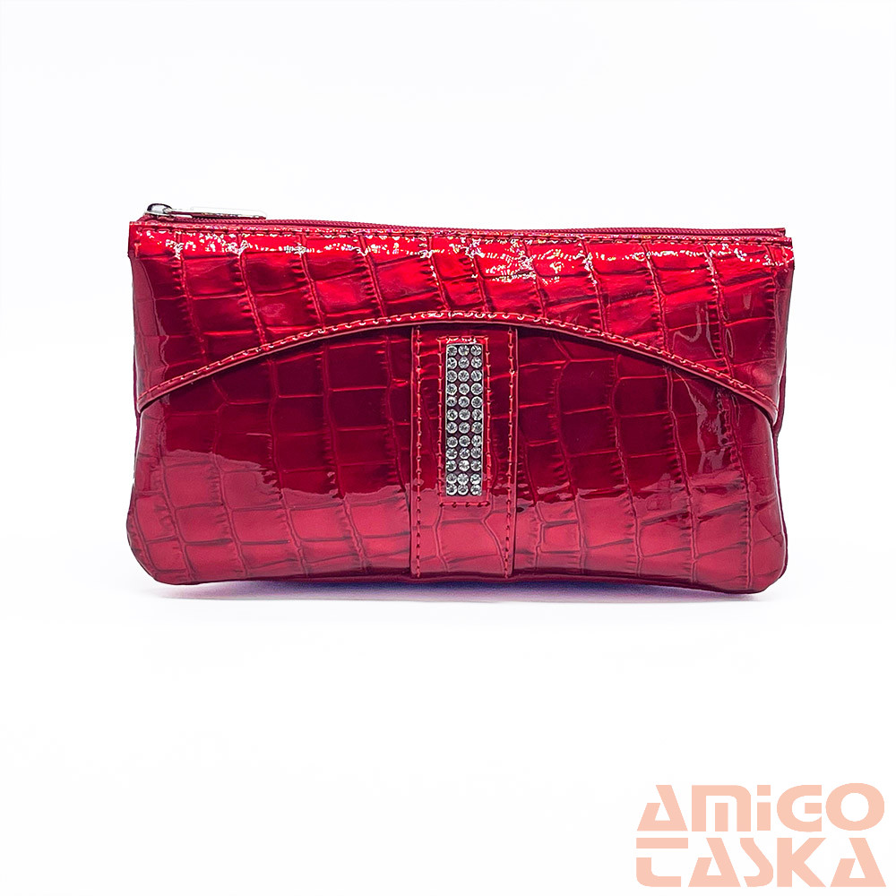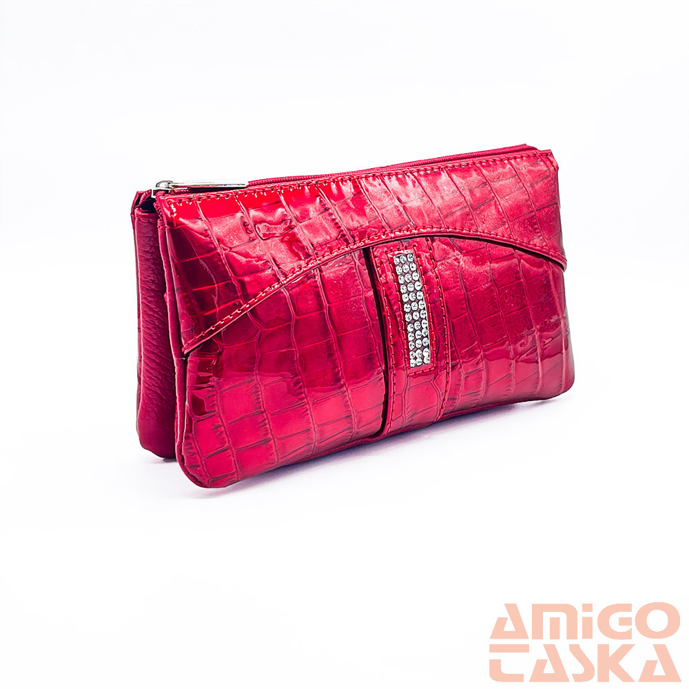 - Nem szokványos „neszeszer” fazonú, valódi bőrből készült, különleges swarovski kövekkel díszített női pénztárca.