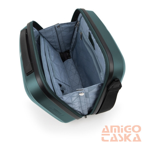 A Gabol Brooklyn keményfedeles cipzáras piperetáska rugalmas polipropilén anyagból készült. A beauty táska különféle kozmetikumok, pipereholmik elhelyezésére ad lehetőséget. Belsejét nyitott és cipzáras extra zsebek gazdagítják, valamint gumis rögzítő pántok segítik a pakolást, rendezést. A táska belseje cipzáras megoldással két részre osztható. Kézben és vállon egyaránt hordható, a bőröndök húzószerkezetére is ráhúzható.