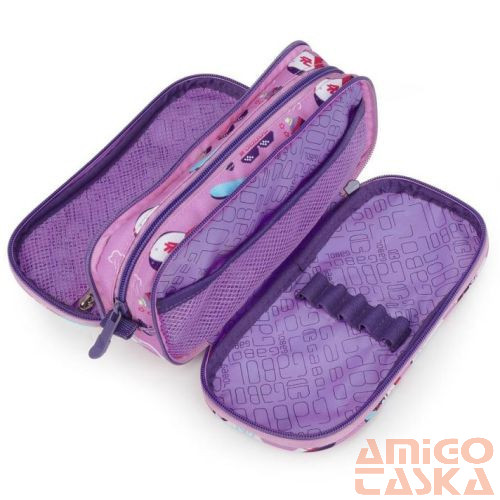 Gabol Roller tolltartó. Három cipzározható főrekesszel rendelkezik, melyekben rengeteg tollat és ceruzát tudunk tárolni, praktikusan rendszerezhetők benne az írószerek és kiegészítők. Igényes kialakításának köszönhetően hamar a lányok kedvencévé vált.