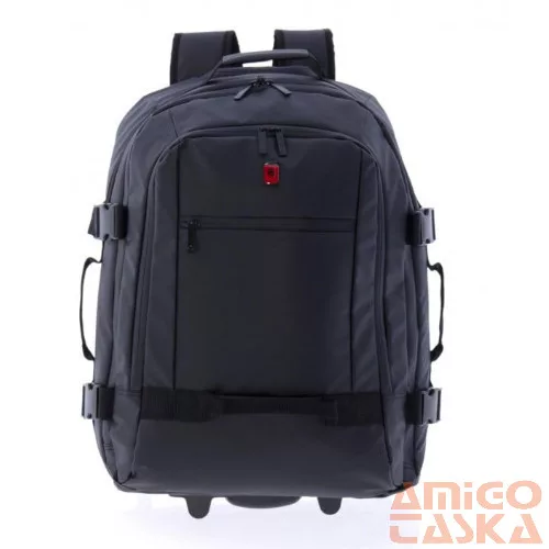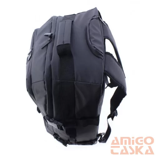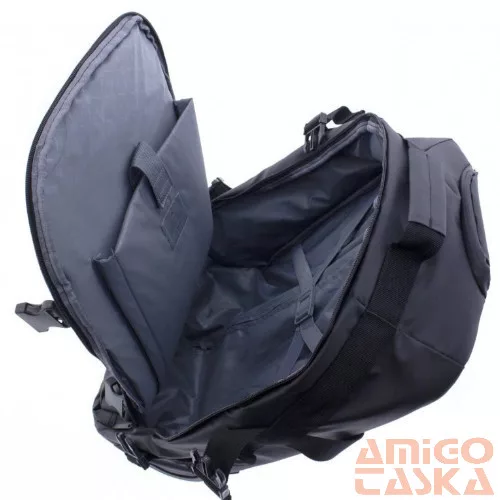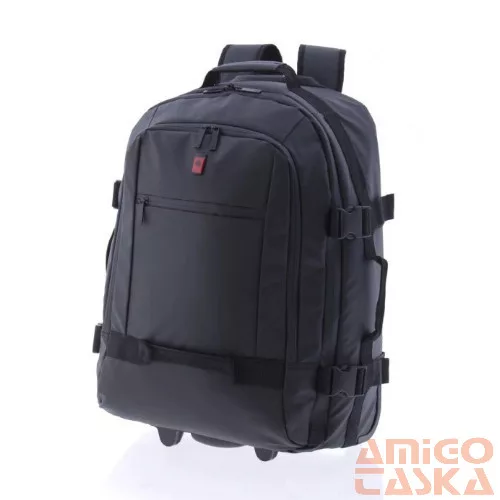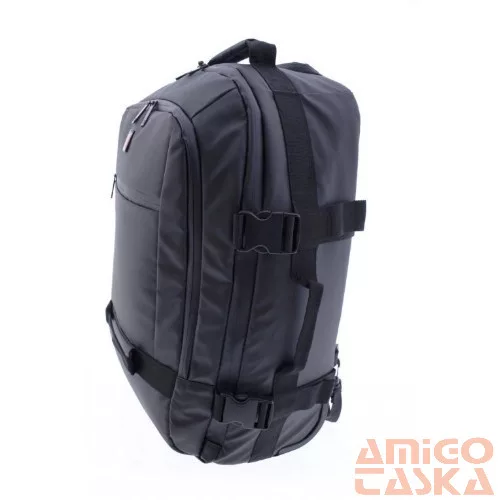 A hátizsák vállpántjai a hátrésznél elrejthetőek. A húzókart a rejtett cipzáras zsebből kiszabadítva kényelmesebbé tehetjük a táska használatát. Továbbá, a gyártó négy kézifogót is elhelyezett a hátizsákra a könnyű kezelhetőség jegyében. Csatos leszorítópántjai segítenek kompakt formában tartani a táskát. A hátizsák vízlepergető anyagból készült, még a cipzárai is védettek - ideális kézipoggyász.