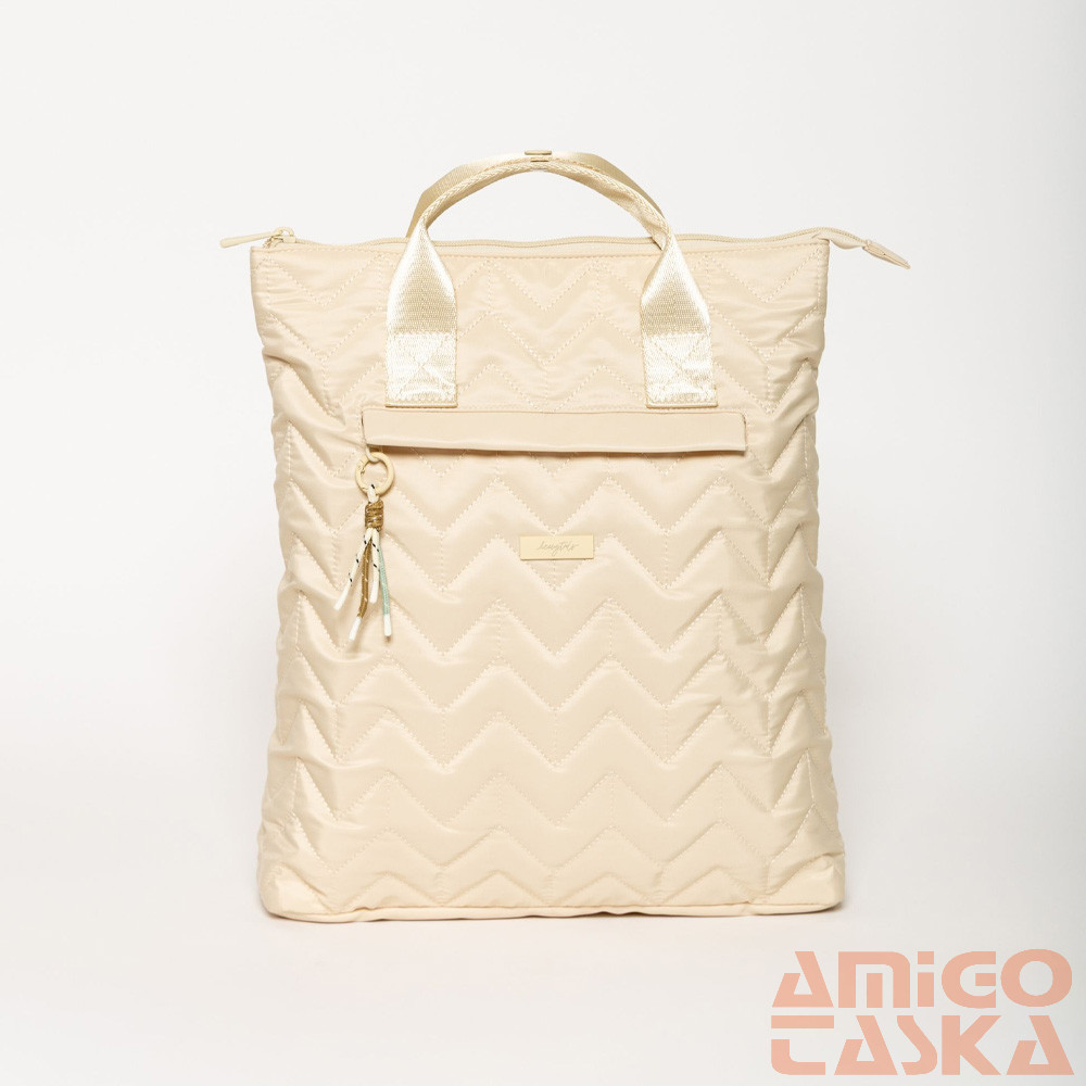 - Kifinomult női hátizsák, dekoratív steppelt anyagból.