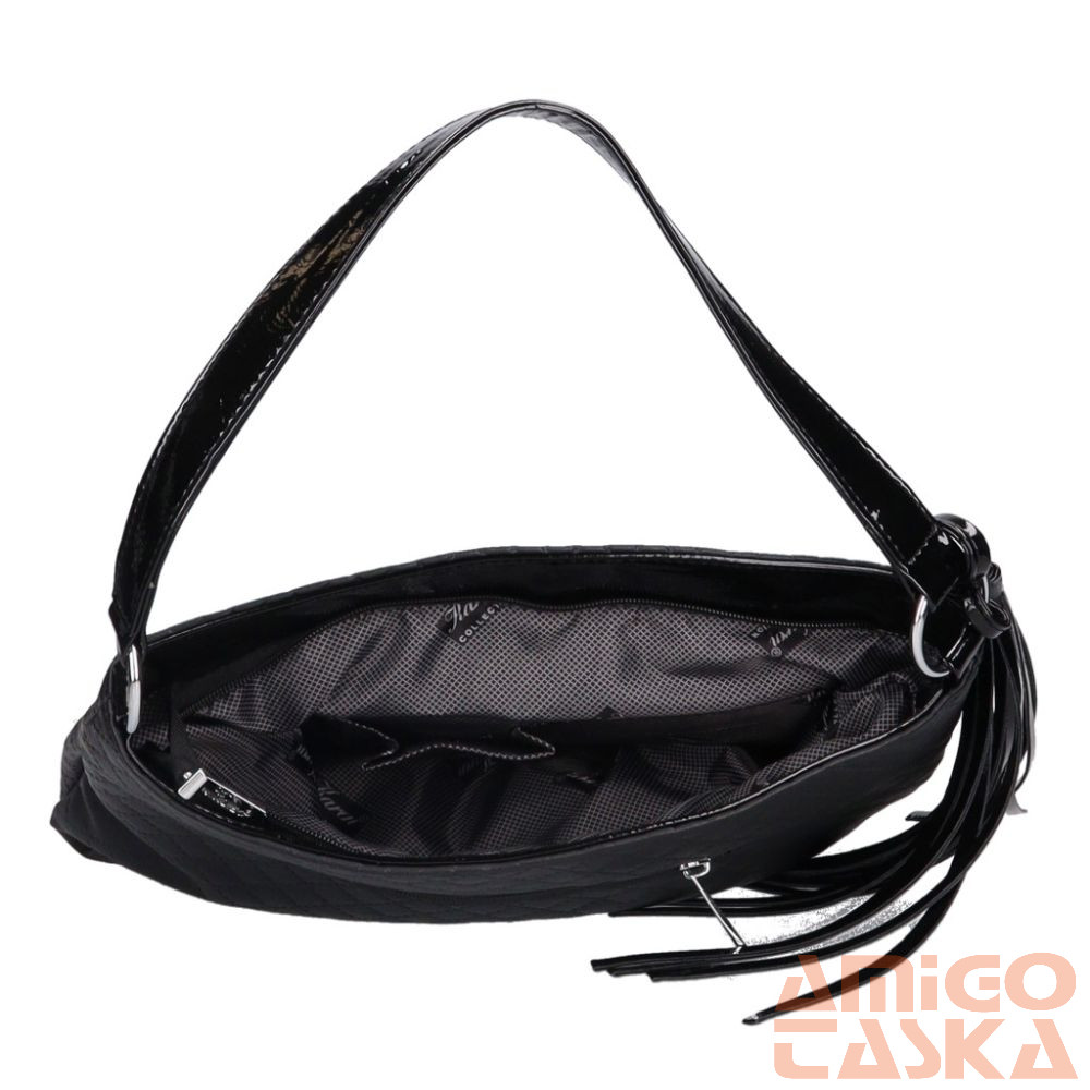 Karen rostbőrből készült női válltáska. Cipzáras fő rekesze egyterű, belsejében cipzáras bélészsebet, vele szemben egy kisebb fakkot használhatunk. A táska hátulján egy lapos cipzáras zsebet találunk.