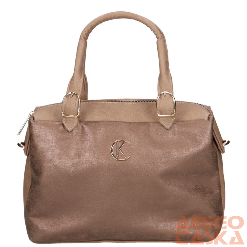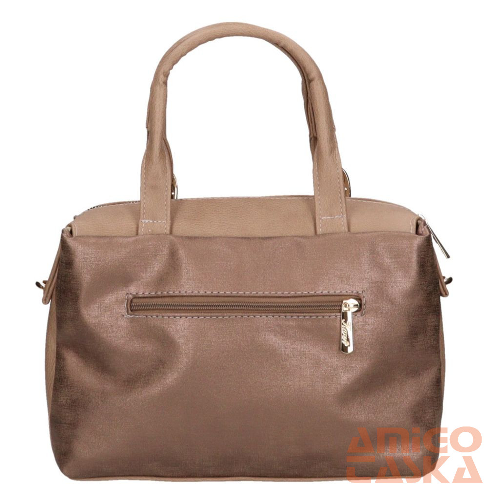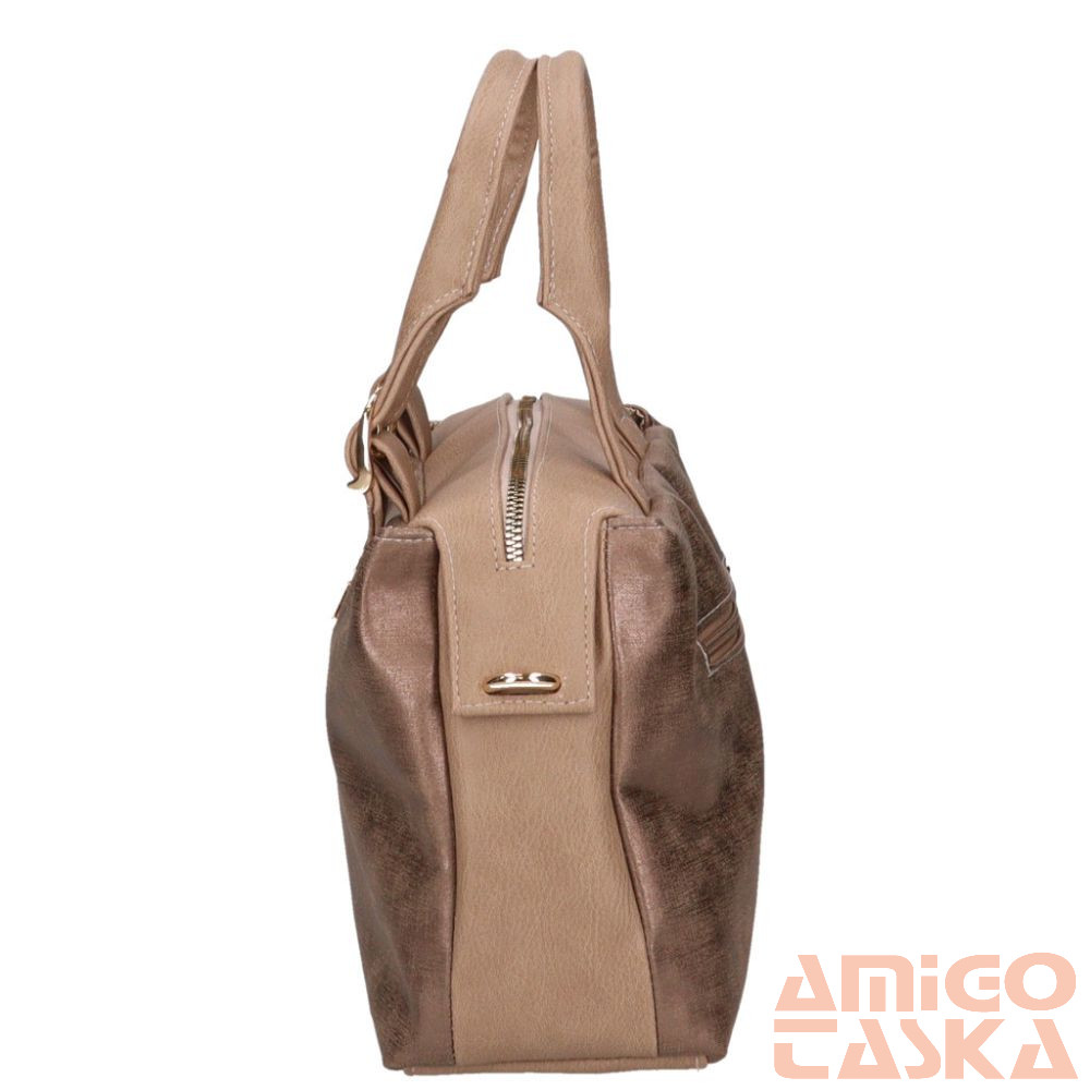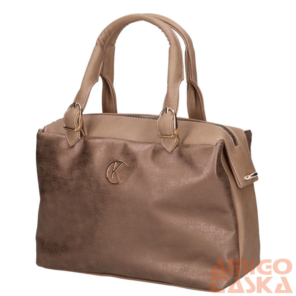 Karen rostbőr női táska. A táska egy fő és egy kisebb cipzáras zsebbel rendelkezik. A fő részben egy cipzáras bélészseb, vele szemben két kisebb fakk található. A termék alján kis fém talpak vannak.
