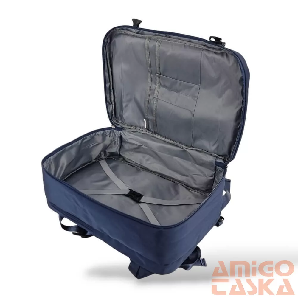 - Egy fő rekesz cipzárral zárható, kényelmesen felfelé nyílik, mint egy bőrönd.