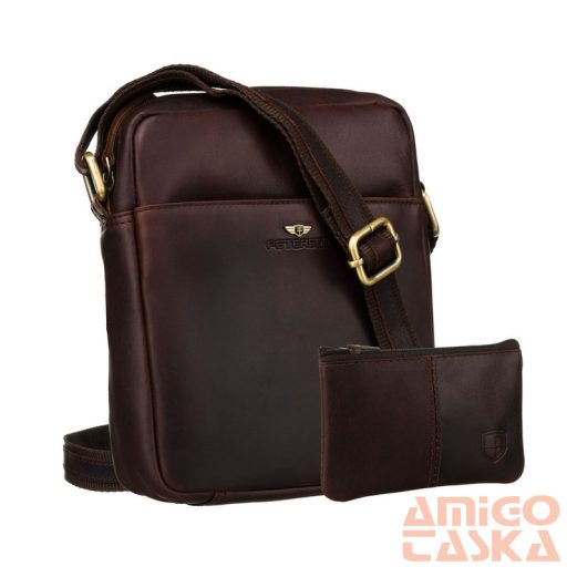 A táska állítható pánttal rendelkezik , amely a táska színében lévő bőr szegéllyel van megerősítve, és masszív fém csatokkal van rögzítve.