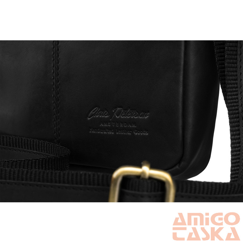 Klasszikus férfi bőr válltáska fekete színben, zsebekkel és tokkal - Peterson