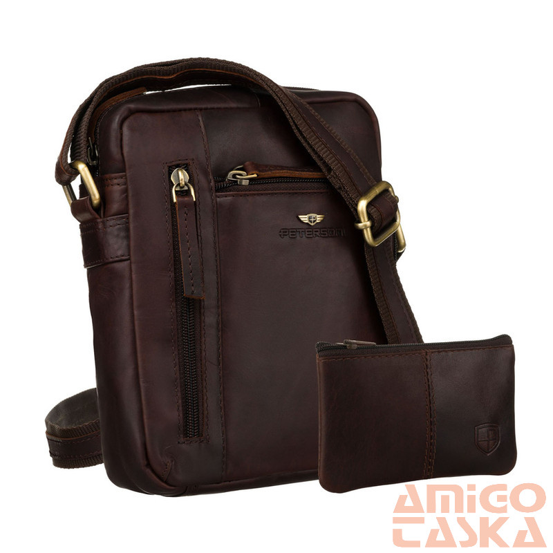 Klasszikus férfi bőr válltáska fekete színben, zsebekkel és tokkal - Peterson