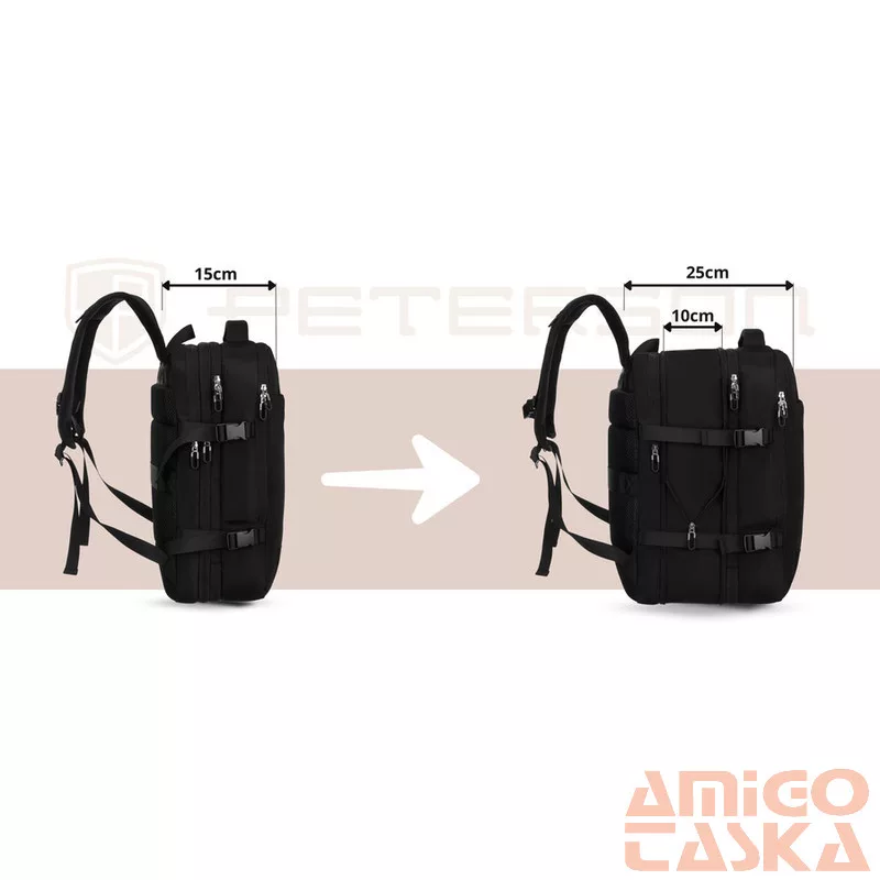 Egy praktikus elem – a mélység 15-ről 25 cm-re növelhető . A cipzáras rendszer lehetővé teszi, hogy a hátizsák térfogatát könnyedén az aktuális igényeidhez igazítsd – anélkül, hogy az arányok vagy a kényelem megváltozna.