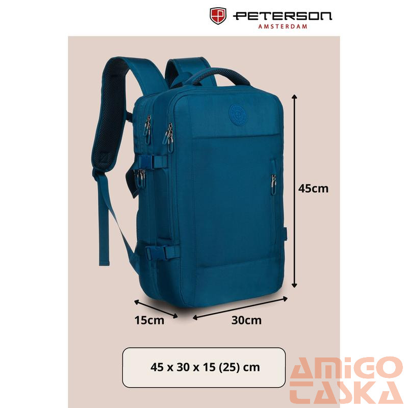 Zöld utazóhátizsák laptophellyel és USB-porttal - Peterson