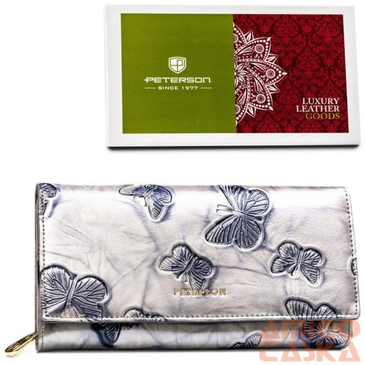 Női bőr pénztárca piros színben, dombornyomott pillangókkal, patentzárral - Peterson