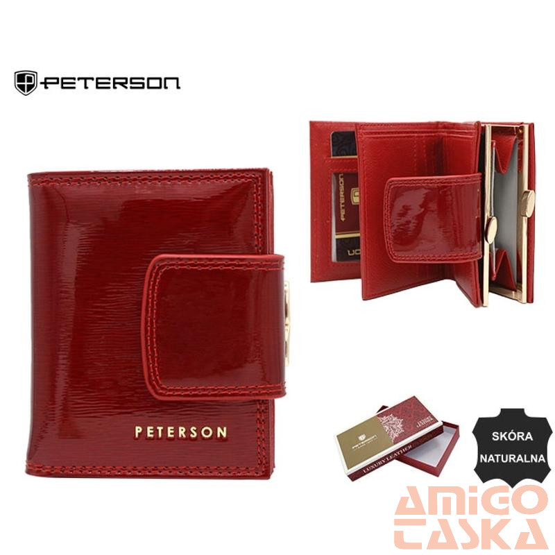 MéretekMagasság : 10,5 cm | Szélesség : 8,5 cm | Vastagság : 3 cmKompakt női pénztárca lakkbőrből - Peterson