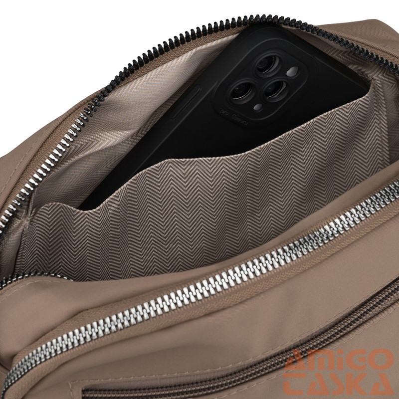 - Állítható pánt, amely lehetővé teszi a hordozás módjának az igényeidhez igazítását.
