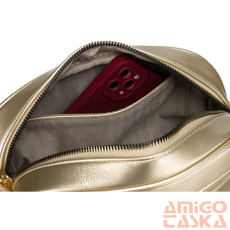 ️ A táskának van egy cipzáras fő rekesze , amelyben 2 praktikus rekesz található: egy nyitott rekesz az apróságoknak és egy cipzáras zseb az értéktárgyaknak.