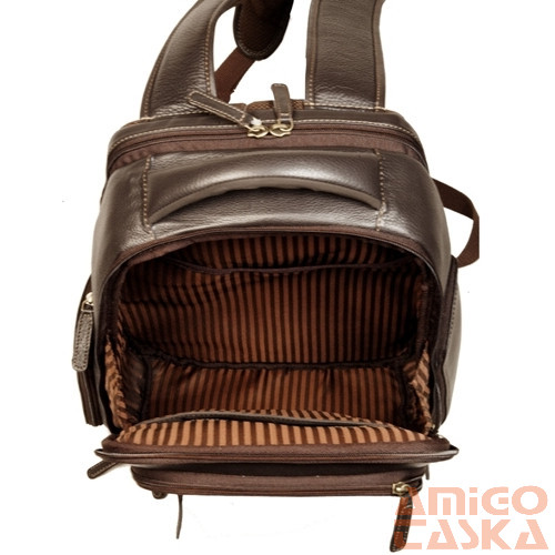 Rosme bőr 15,4"-os laptophátizsák első osztályú anyaga és kimunkálása méltán megállja helyét a bőrdíszműves iparágban. Igényes, letisztult forma. Fogantyúja kényelmes átmérőjű, rugalmas. Kézben, és állítható szivacsos vállpántjainak, valamint szivacsos hátrészének köszönhetően háton is kényelmesen hordható. A hátizsák két cipzáras főrekesszel rendelkezik. Egyik főrekeszében 15,4”-os laptop tárolható, a másikban található két rejtett zseb. Öt mellékrekesszel rendelkezik (három elől, kettő pedig a hátizsák két oldalán kapott helyet). Egyik elülső cipzáras mellékrekesze bankkártya, névjegy-, írószer-, esernyő- és mobiltartóval rendelkezik. A táskát úgy alakították ki, hogy a bőröndök húzószerkezetére ráhúzható legyen. Szép, igényes, finom tapintású, valódi, minőségi bőr.