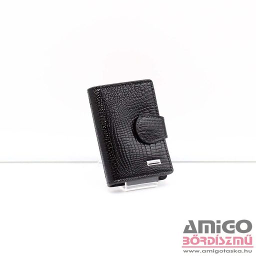 Fuerdanni fekete / lakk / nyomottmintás álló patentos kártyatartó k19