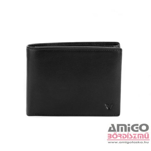 Valódi bőrből készült férfi pénztárca. Kinyitva jobb oldalon aprópénztartó helyezkedik el. Bal oldalon kártya, irattartó, igazolvány és bérlet tárolására alkalmas helyet találunk, mely oldalra kilapozható változatban készül. Két rekeszes bankjegytartóval rendelkezik.