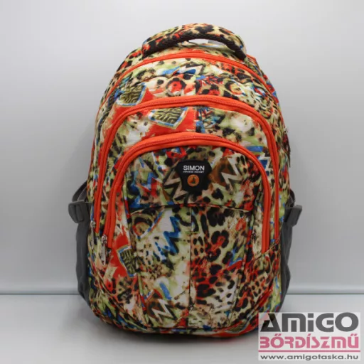 Hátizsák textil vízlepergető anyagból, szivacsos hát és vállkialakítással. Három cipzáros zsebbel. Mindkét oldalán hálós italtartóval.