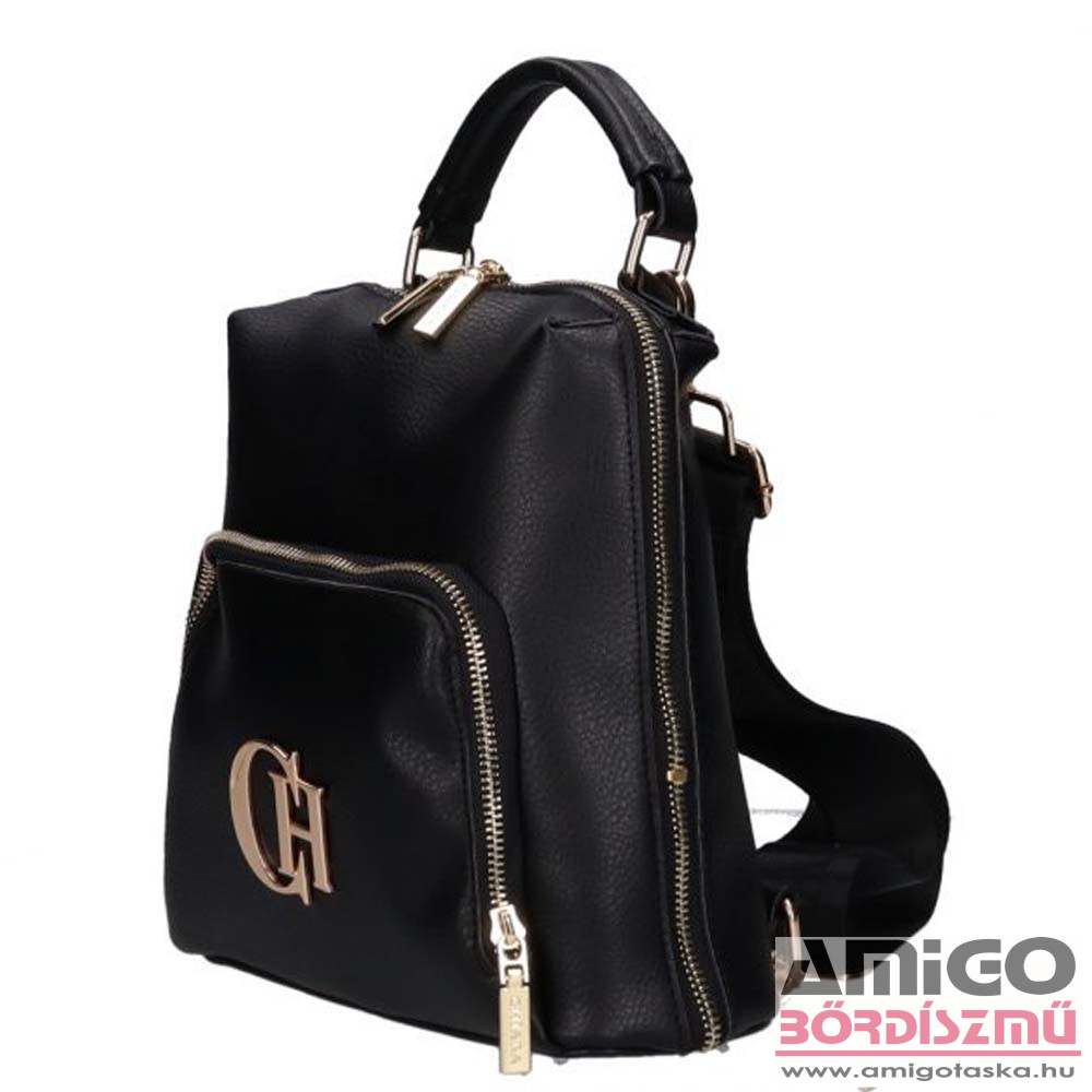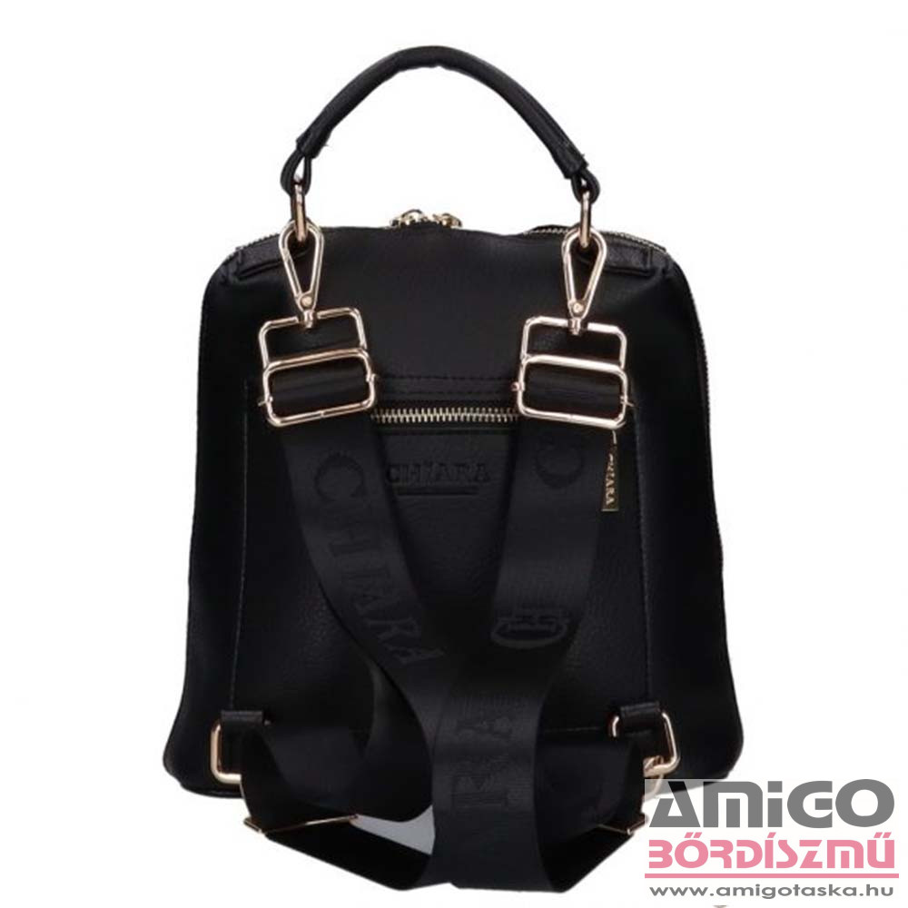 Chiara rostbőrből készült női táska mely használható válltáskaként, hátizsákként és kézben is. Egy fő rekesze van és egy - egy kisebb cipzáros zsebe a hátulján és az elején. A fő részben kisebb fakk található. A termék alján kis fém talpak vannak. Vállpántja állítható.