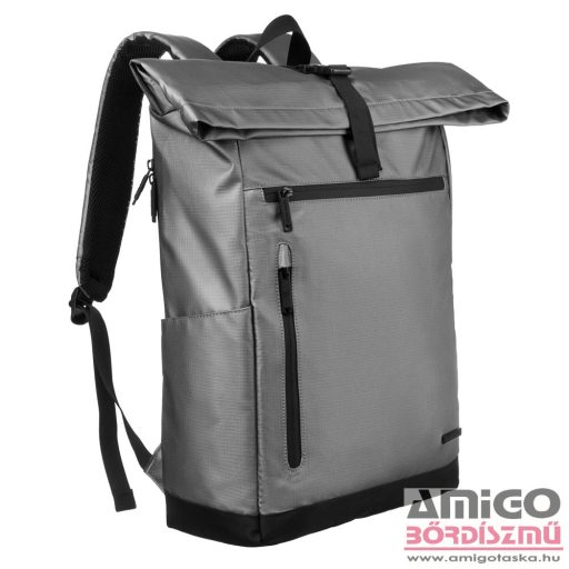David Jones hátizsák, vízlepergető, erős vászon anyagból, elől kettő lapos, cipzáras zsebbel rendelkezik. Cipzárjai is vízállóak. Biztonságos roll-up tetején csatos záródás is van. Ezen a fő rekeszen kívül hátulján nyitható szivacsos notebook tartót használhatunk. Mindkét oldalán kulacstartó található, kényelmes párnázott hátfallal rendelkezik. Egyik oldalán egy kábel kivezető nyílás van.