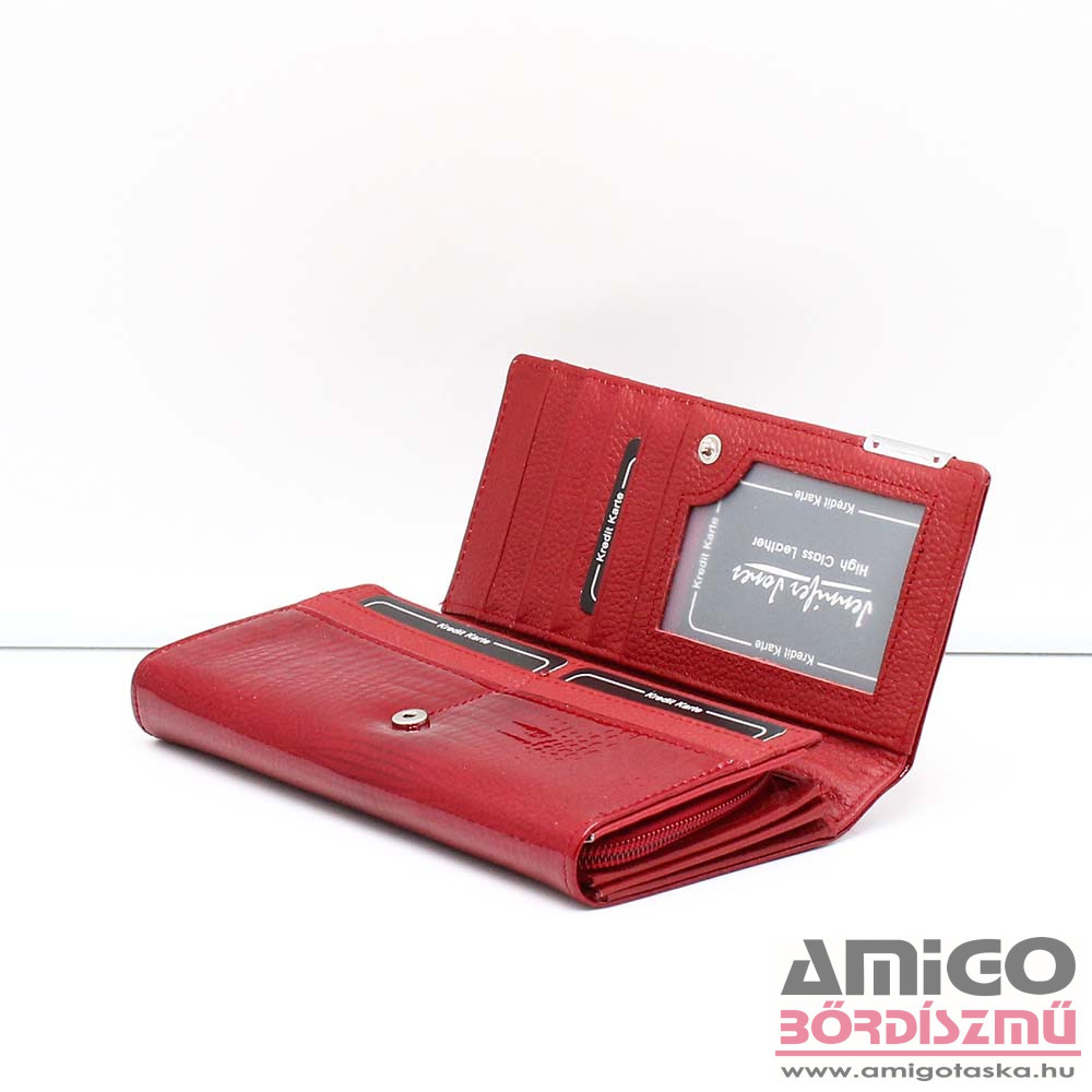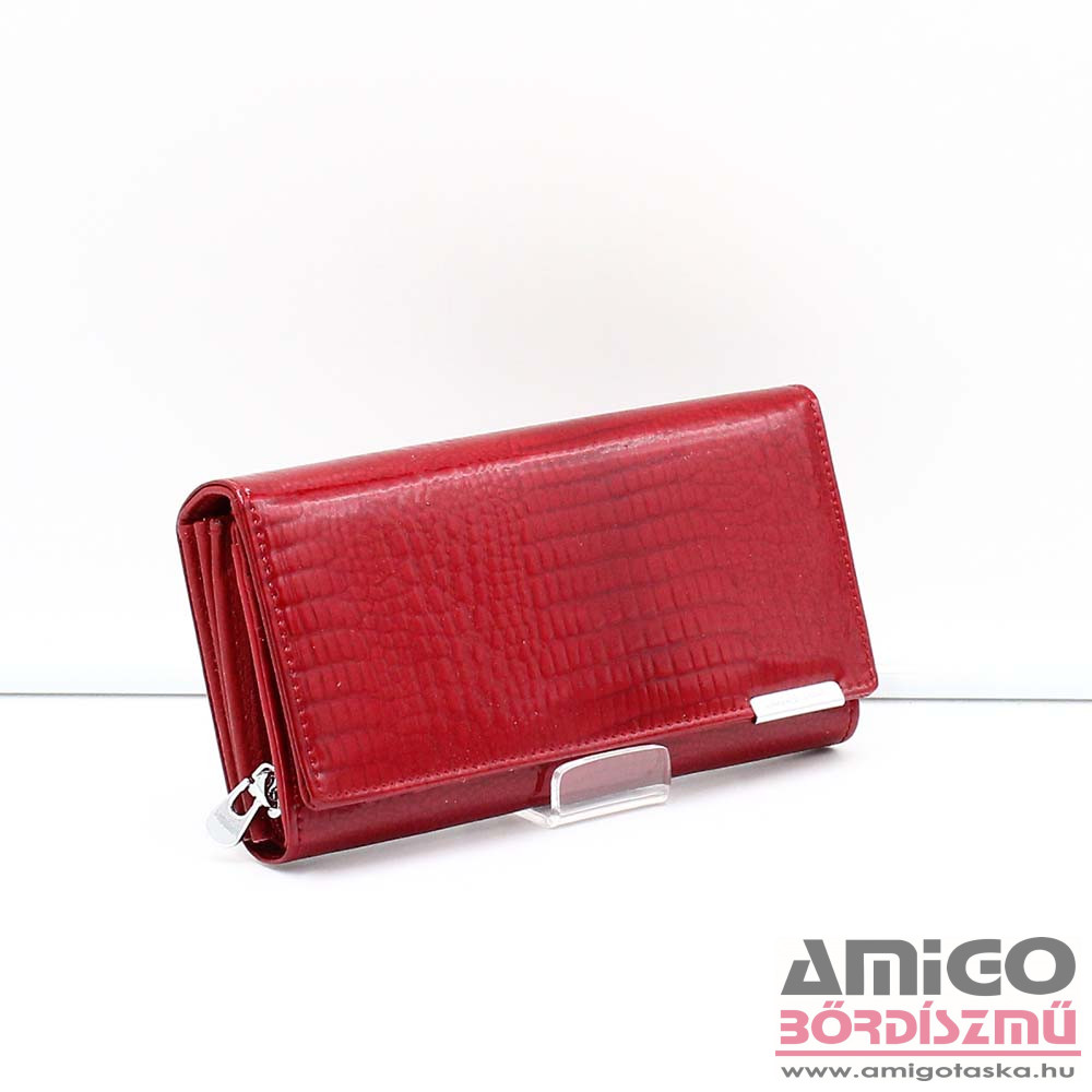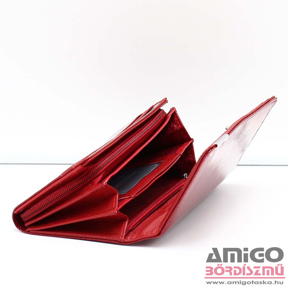 Valódi bőrből készült nagy méretű női pénztárca. A fedelébe beépített RFID fólia révén hatékonyan véd a digitális adatlopás ellen a pénztárcában tárolt kártyákra vonatkozóan. A pénztárca patentos fedelét kinyitva számos kártya és irattartót találunk. Két tágas papírpénztartója között egy kártyatartózseb rejtőzik, mellett egy lapos és egy cipzáras zsebet találunk még itt. Aprópénztartója két fakkos és cipzárral záródik.
