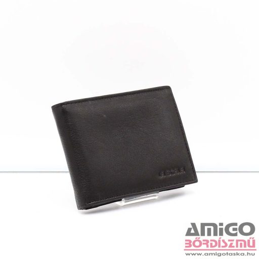 Valódi bőrből készült férfi pénztárca. Kinyitva jobb oldalon aprópénztartó helyezkedik el, ami alatt irattartót használhatunk. Középen cipzáras zsebet találunk, ahol mindkét irányba hasznosítható rekesz húzódik meg. Bal oldalon rengeteg kártya-, irattartó, igazolvány és bérlet tárolására alkalmas helyet találunk, ami kihajtható változatban készült és egy patentos bőr pánttal rögzíthető. Dupla rekeszes bankjegytartóval rendelkezik.