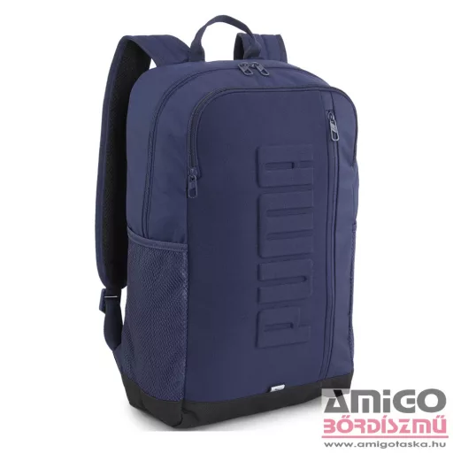 Hátizsák textil vízlepergető anyagból, vékony szivacsos hát- és vállkialakítással. Elejét domborodó márkajelzés díszíti. Két nagy és egy kisebb cipzáros rekesszel rendelkezik. Hátsó rekeszében notebooktartó kapott helyet. Mindkét oldalán hálós italtartót találunk.