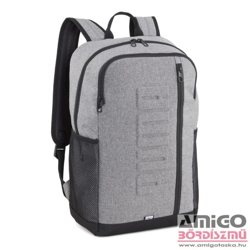 Hátizsák textil vízlepergető anyagból, vékony szivacsos hát- és vállkialakítással. Elejét domborodó márkajelzés díszíti. Két nagy és egy kisebb cipzáros rekesszel rendelkezik. Hátsó rekeszében notebooktartó kapott helyet. Mindkét oldalán hálós italtartót találunk.