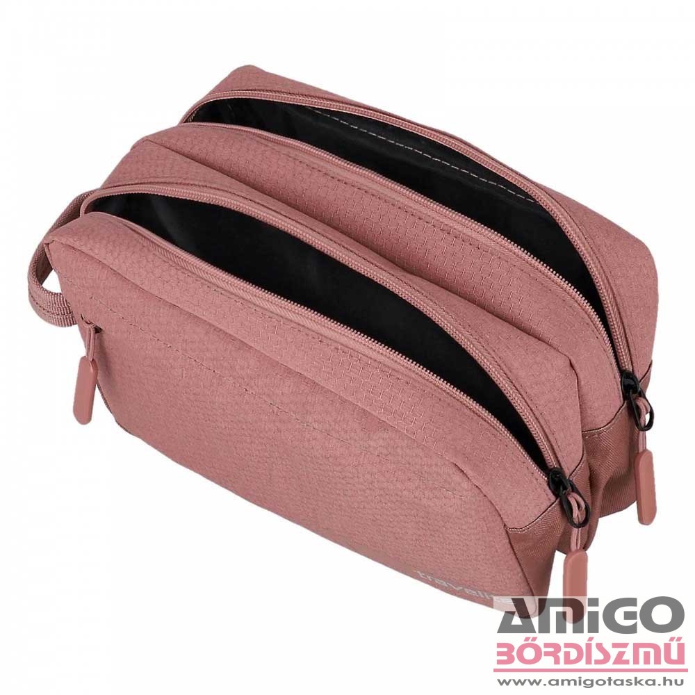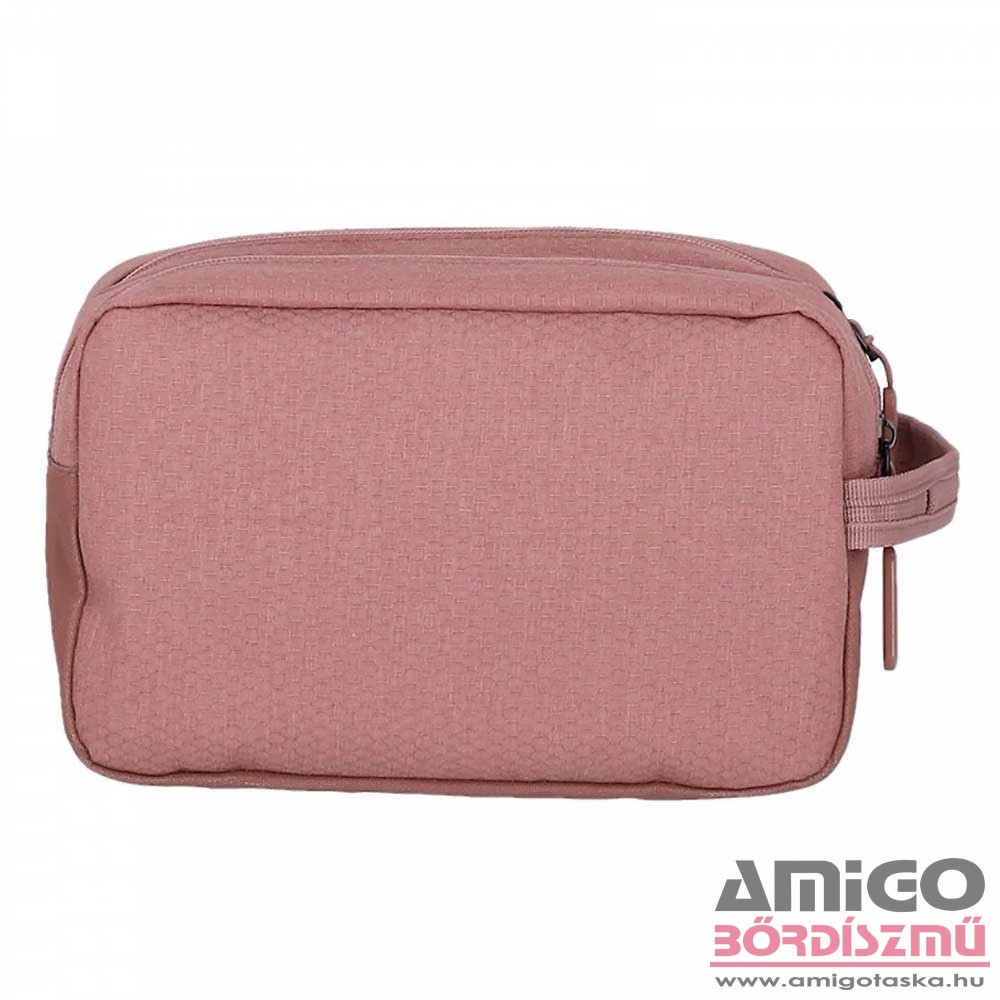 Textil, vízlepergető anyagból készült női neszeszer. Könnyen cipzározható kényelmes húzókájának köszönhetően. Dupla rekeszében kényelmesen rendezhetjük pipere dolgainkat, ebben segít még a belsejében található gumis pánt is segít. A neszeszer elején egy cipzáras zseb lapul még.