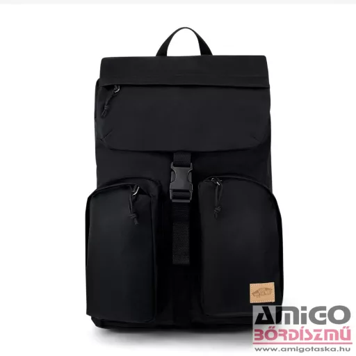 Hátizsák textil vízlepergető anyagból, vékony szivacsos hát- és vállkialakítással. A nagy rekesze a ráhajtós csattal záródó fedele alatt, húzó zsinorral záródik. A táska elején kettő cipzáros zsebbel rendelkezik, amelyek megkönnyíti a kisebb tárgyak biztonságos tárolását.