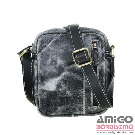 Valódi bőrből készült férfi válltáska. Fő rekesze cipzárral záródik, belsejében egy kis nyitott fakkot, vele szemben egy cipzáras bélészsebet használhatunk. Elején és hátulján egy cipzáras zseb lapul még. Vállpántja állítható.