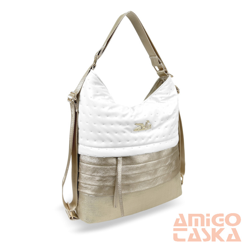 MéreteMa:35 | Sz: 33 | Mé: 12 cmZellia válltáska ami egy mozdulattal hátizsák táskává alakítható, ezt a táskát azon hölgytársaimnak ajánlom akik mindig bajban vannak ,hogy nincs elég szabad kezük . Imádni fogjátok gyors és praktikus funkcióját ,hogy állítható vállpántjával egy hosszabb pántos vállra tehető táskát csinálhatsz ami a téli vastagabb kabát szezonban jól jön. Közepesen nagy méretű ,mindent amit csak cipelsz magaddal ez a táska biztosan elnyel. Erősített pántjai segítségével hátizsák funkciója rendkívül kényelmes. Kívül belül zsebekkel ellátott.